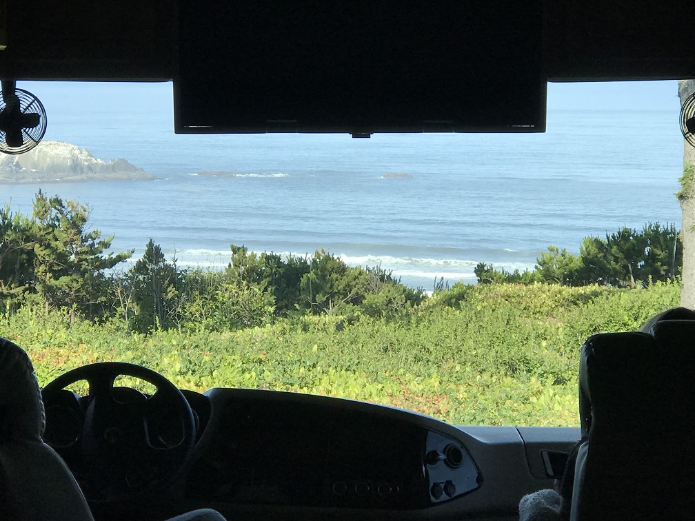 Jun 28th 2018: for the month of July till early August we are hanging out at Pacific Motor Coach Resort in Newport Oregon. It is really a resort vs. a KOA and we were right on the ocean/beach. We had to move back 3 rows because we only that that lot for a week, but love it here. 9 stars of 10. ( only deduct is no onsite restaurant :-) ) . Can be a bit windy, but this is the place to escape the summer heat with a mile long quiet beach to walk every day. Debbie is taking our daughter Taylor to Australia to attend Hillsong College, while I hang out in beautiful Oregon. This place is a must stay. Treat yourself to an ocean view for a few days of $120 a night of so. Worth every penny. We go back to Ocean Front August 1st-6th